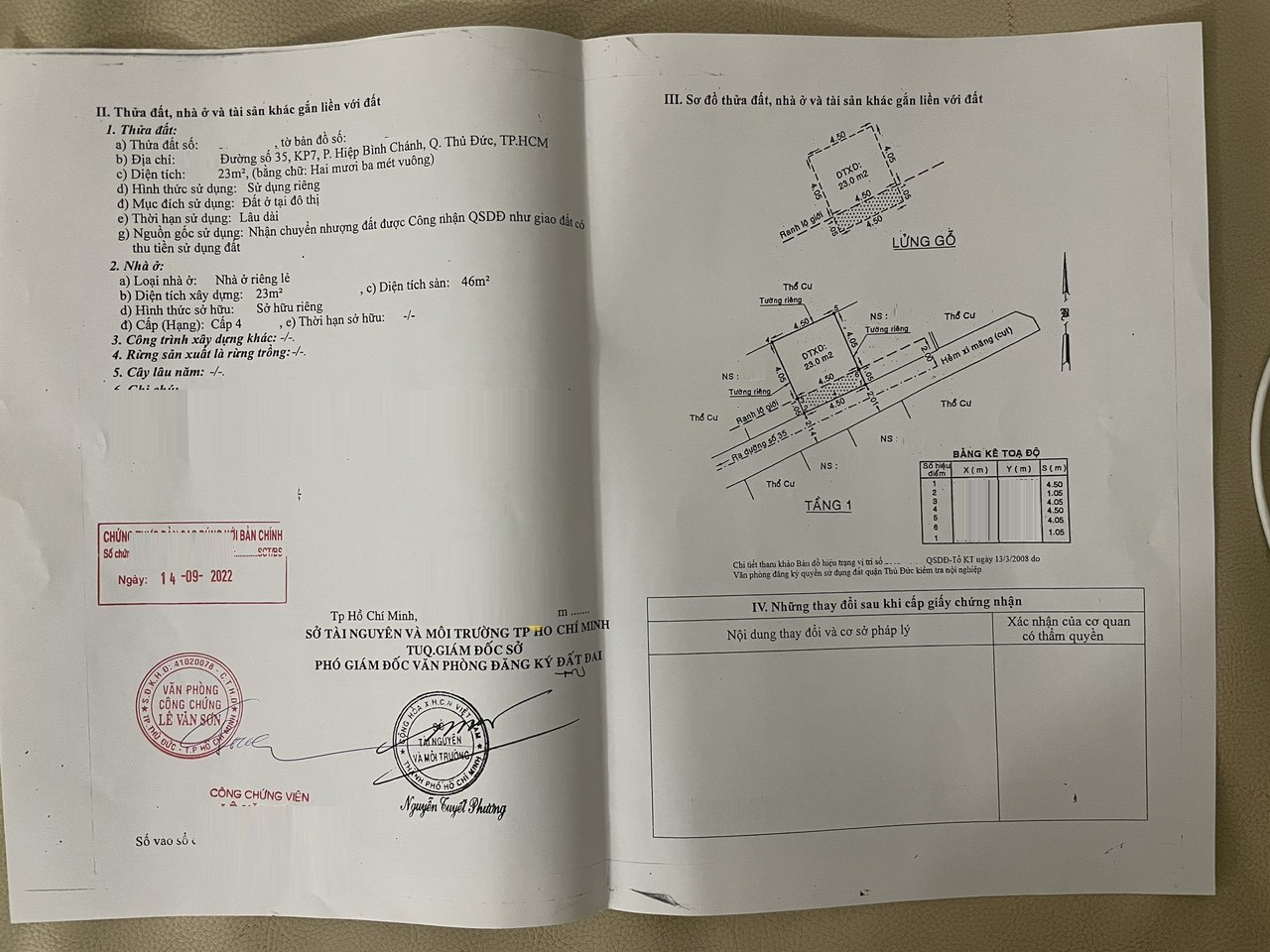 *Diện Tích đất công nhận: 23 m2 ngang 4.5 m x dài 5.1 m