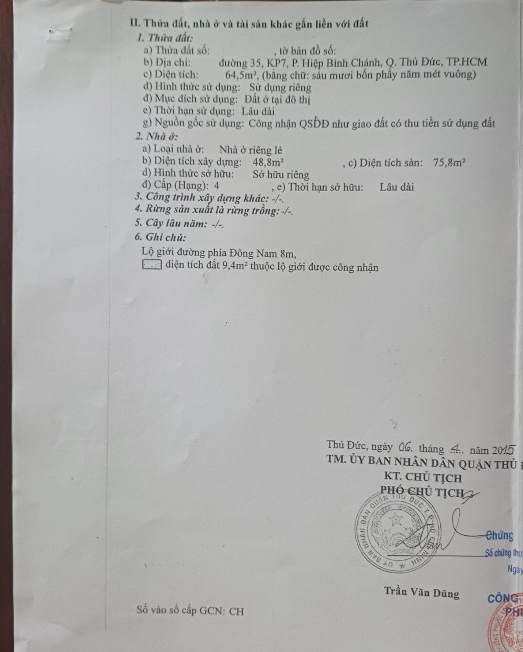Địa chỉ tài sản: đường số 35, phường Hiệp Bình Chánh, Phường Hiệp Bình Chánh, Quận Thủ Đức, Hồ Chí Minh
