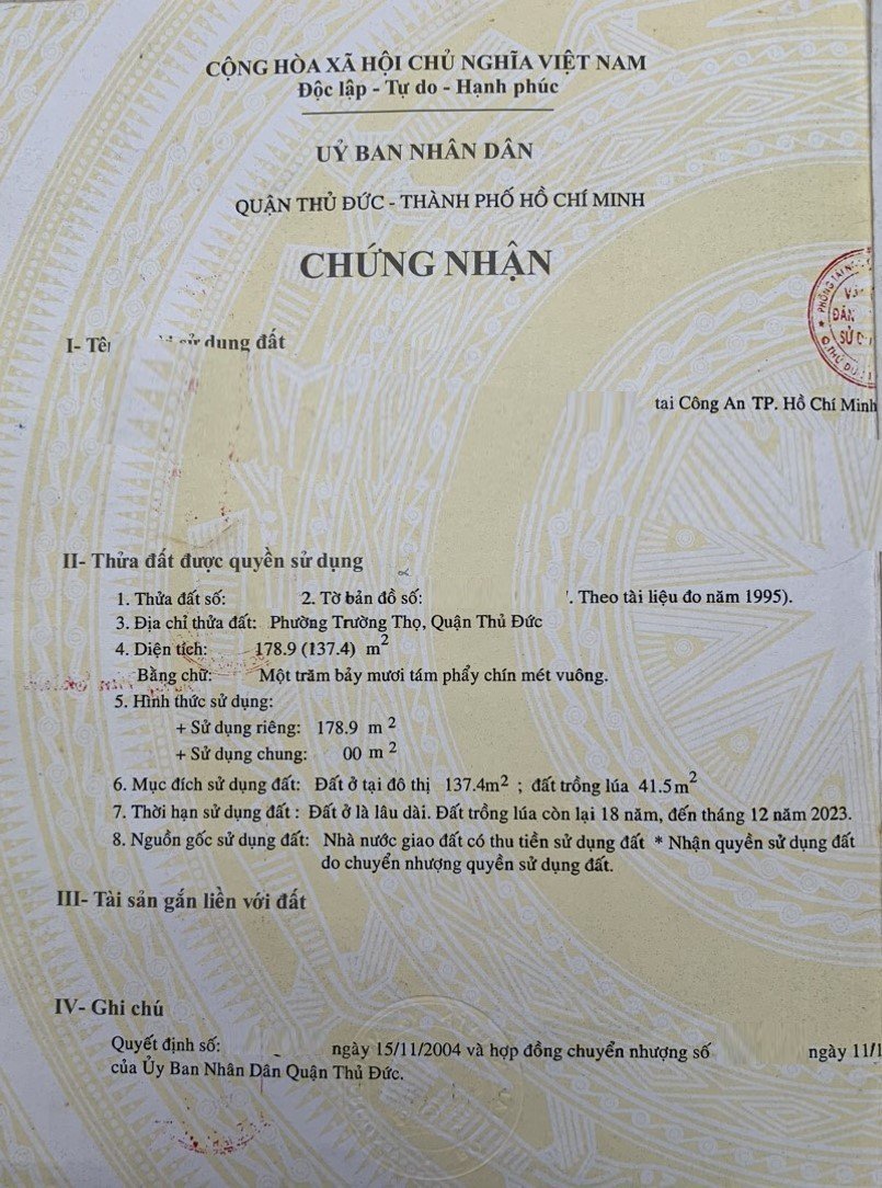 Địa chỉ tài sản: đường số 4 , Phường Trường Thọ,, Phường Trường Thọ, Quận Thủ Đức, Hồ Chí Minh