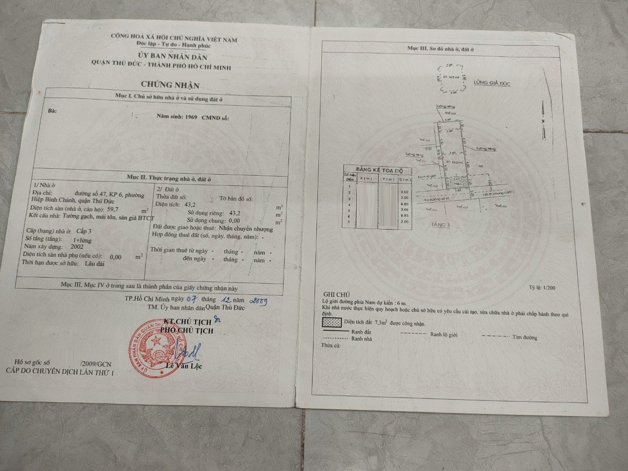 *Diện tích đất công nhận: 43.2m2. Ngang 3.62m x Dài 10.3m.