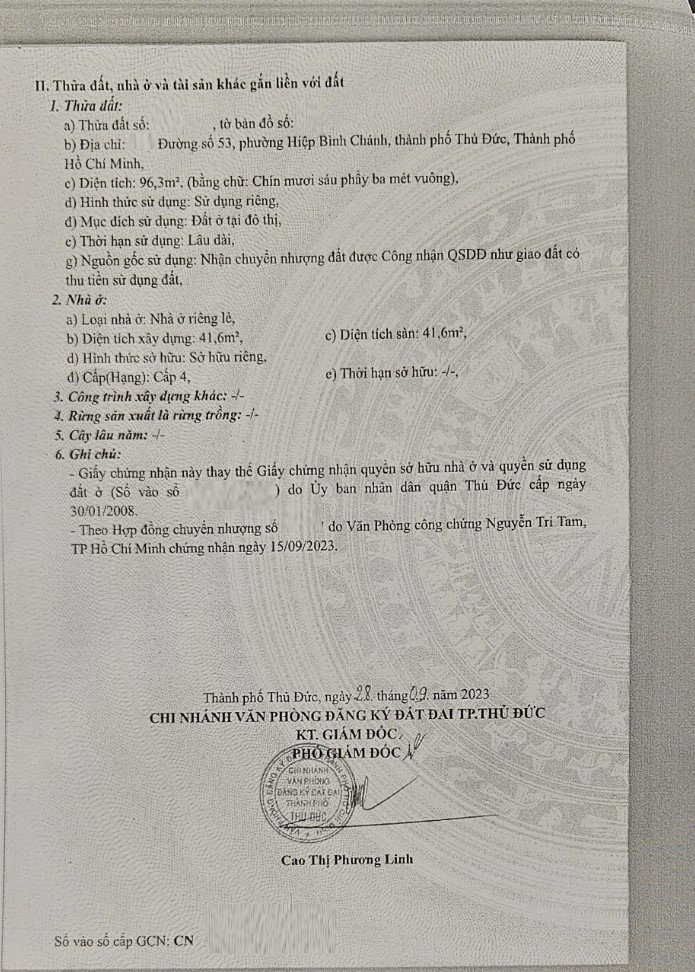 Địa chỉ tài sản: đường số 53, phường Hiệp Bình Chánh, TP Thủ Đức, Phường Hiệp Bình Chánh, Quận Thủ Đức, Hồ Chí Minh