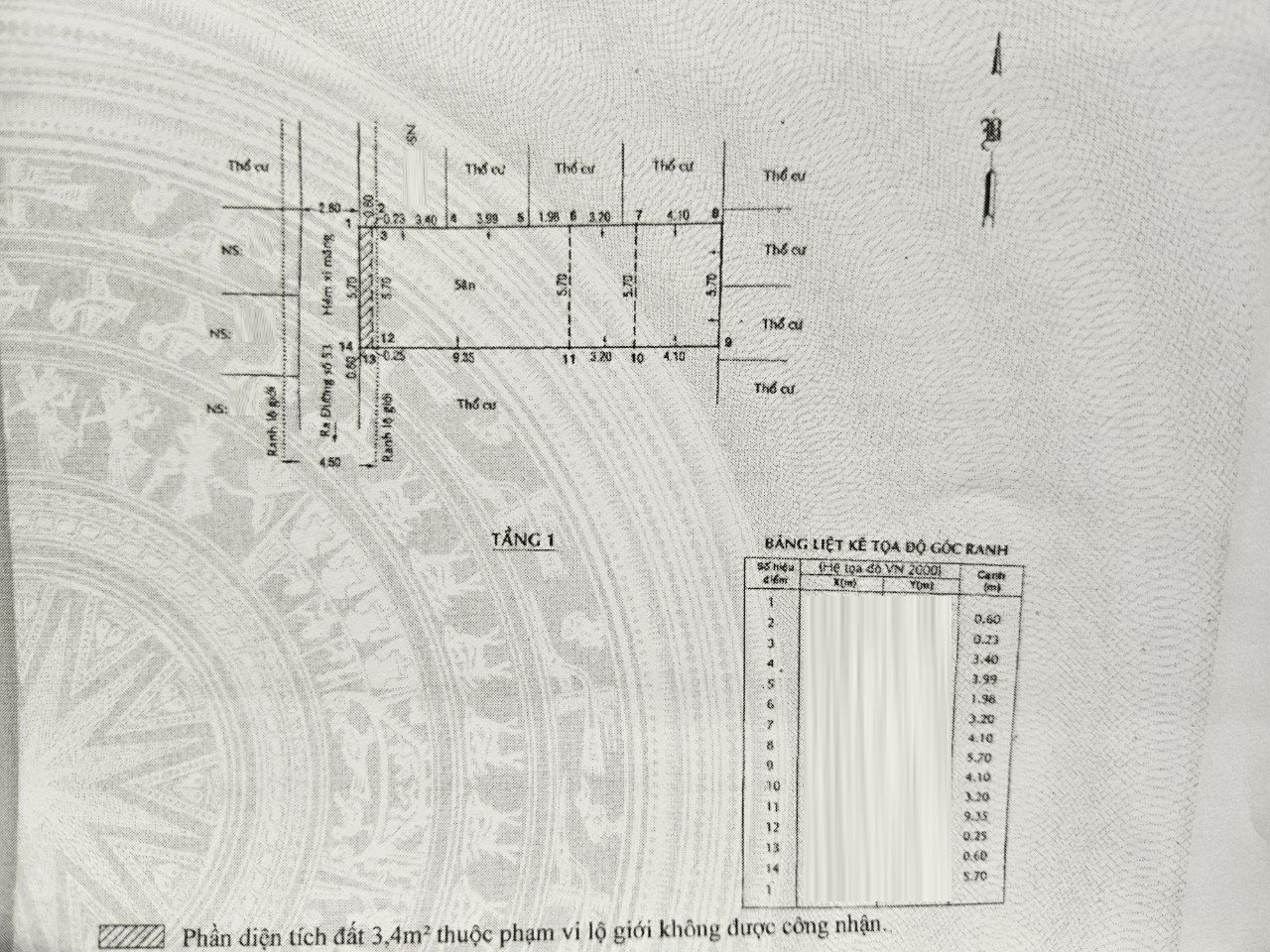 *Diện tích đất công nhận: 96.3m2. Ngang 5.7m x Dài 16.9m