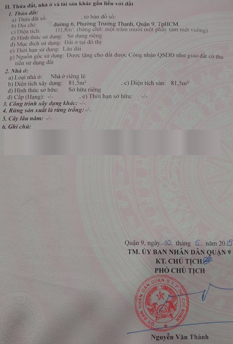 Địa chỉ tài sản: đường số 6, Phường Trường Thạnh, Phường Trường Thạnh, Quận 9, Hồ Chí Minh