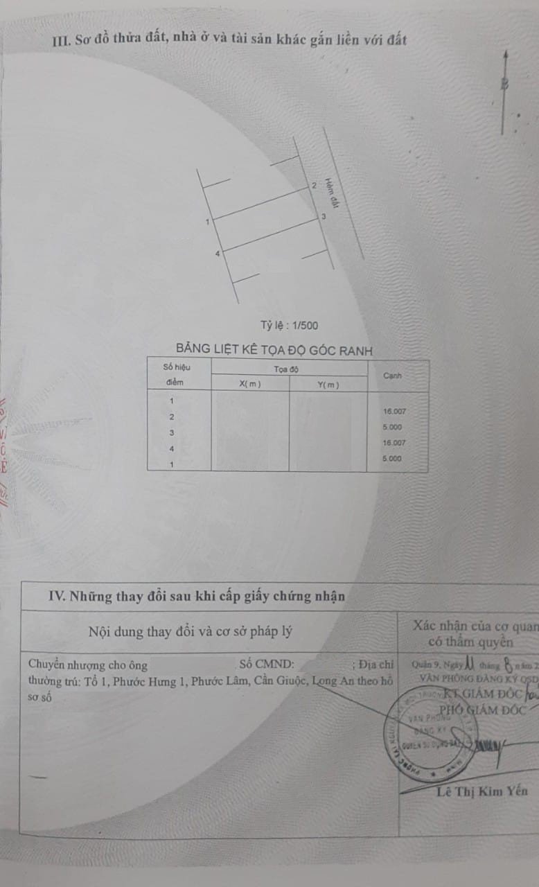 *Diện Tích đất công nhận: 80 m2 ngang 5 m x dài 16 m