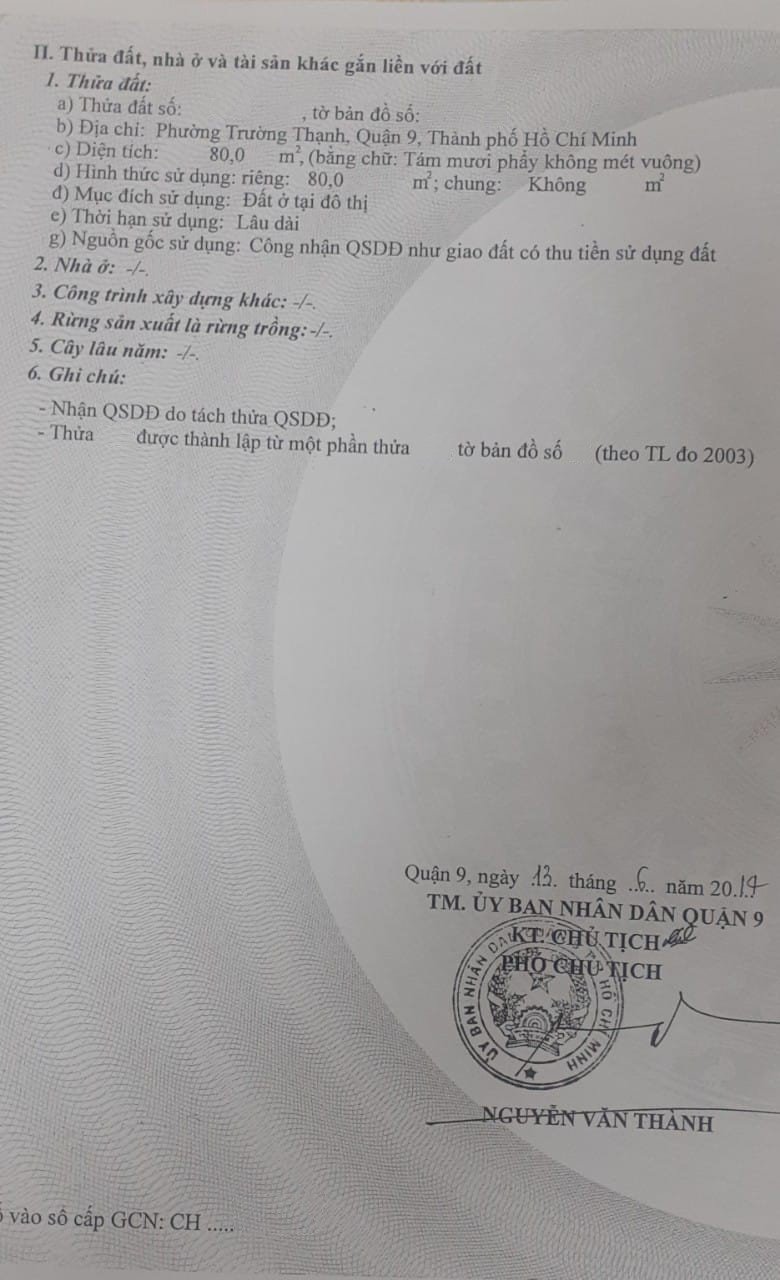 Địa chỉ tài sản: đường số 8 phường Trường Thạnh, Phường Trường Thạnh, Quận 9, Hồ Chí Minh