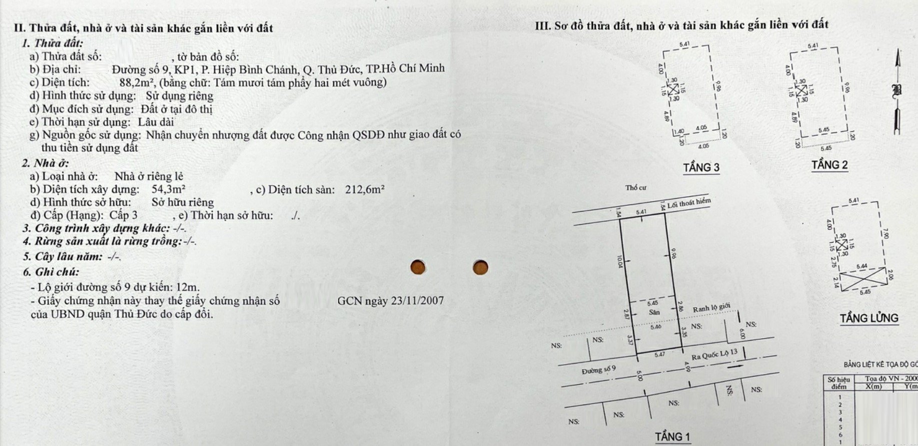 Địa chỉ tài sản: đường số 9, phường Hiệp Bình Chánh, TP Thủ Đức, Phường Hiệp Bình Chánh, Quận Thủ Đức, Hồ Chí Minh