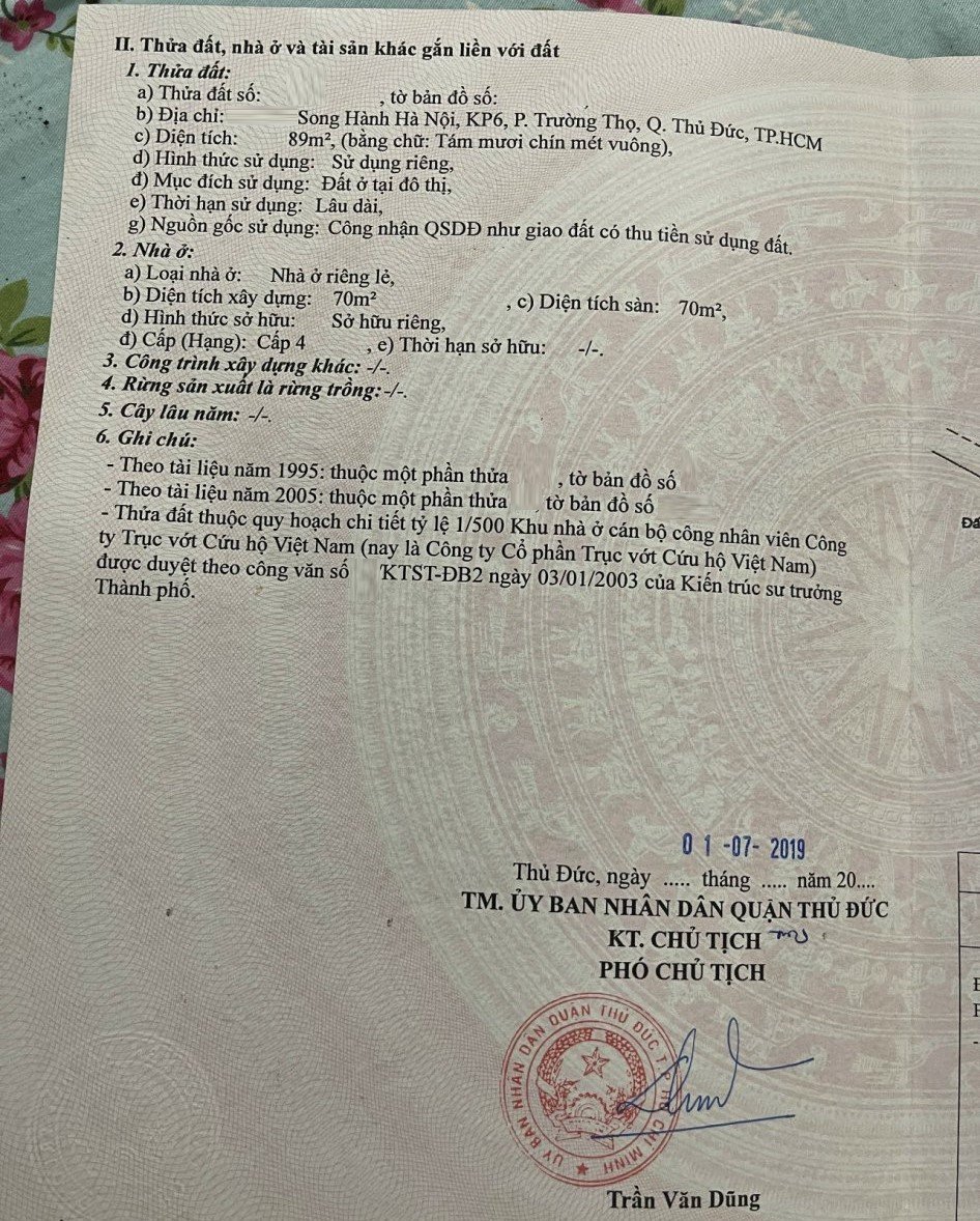 *Diện tích đất công nhận: 89m2. Ngang 3.9m x Dài 22.9m