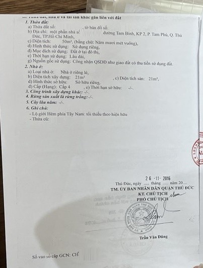 Địa chỉ tài sản: đường Tam Bình, Phường Tam Phú, Thủ Đức., Phường Tam Phú, Quận Thủ Đức, Hồ Chí Minh