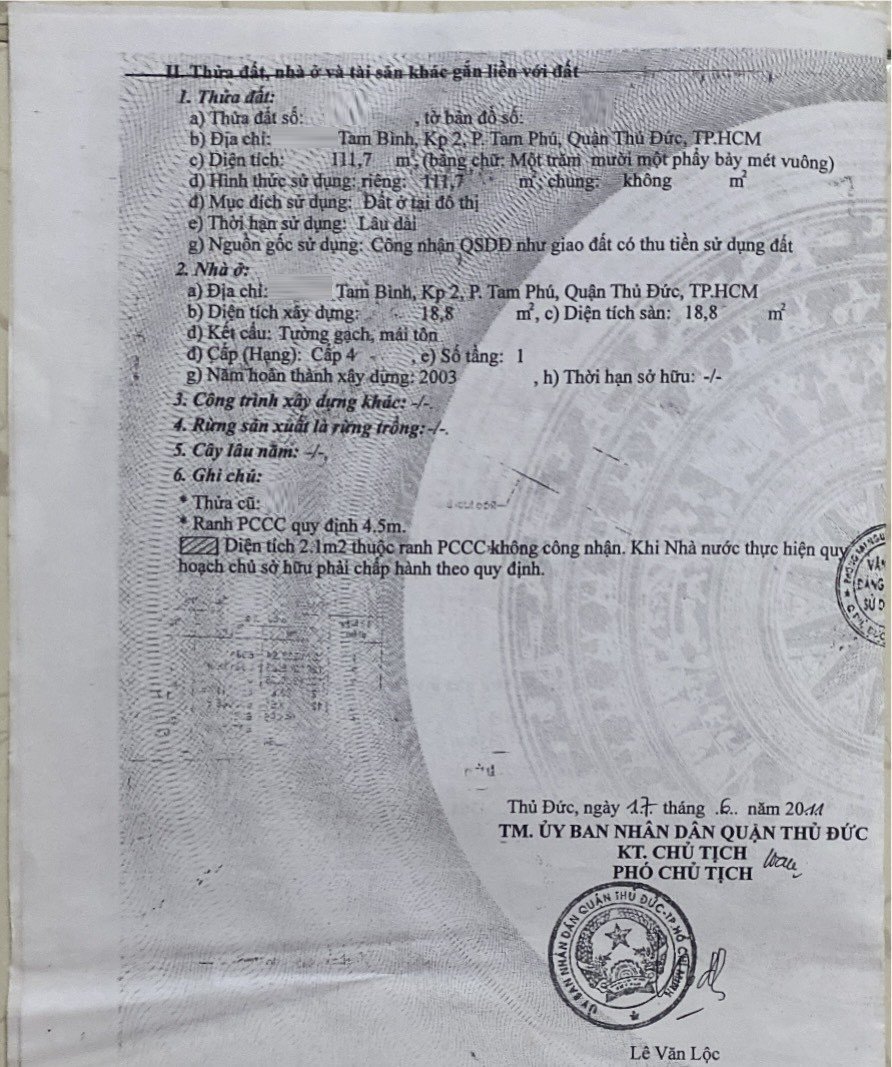 Địa chỉ tài sản: đường Tam Bình, phường Tam Phú, TP Thủ Đức, Phường Tam Phú, Quận Thủ Đức, Hồ Chí Minh