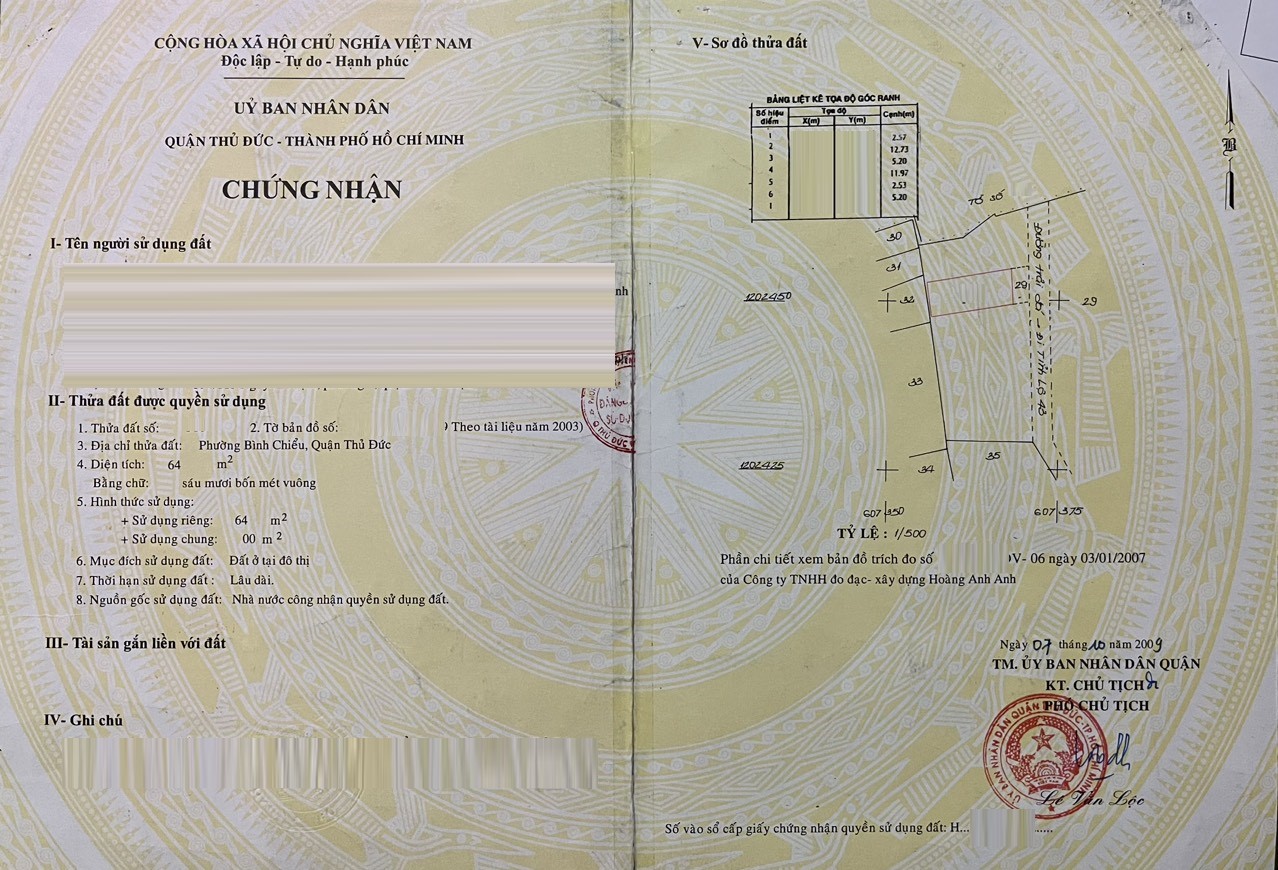 *Diện Tích đất công nhận: 64 m2 ngang 5.2 m x dài 12.3 m