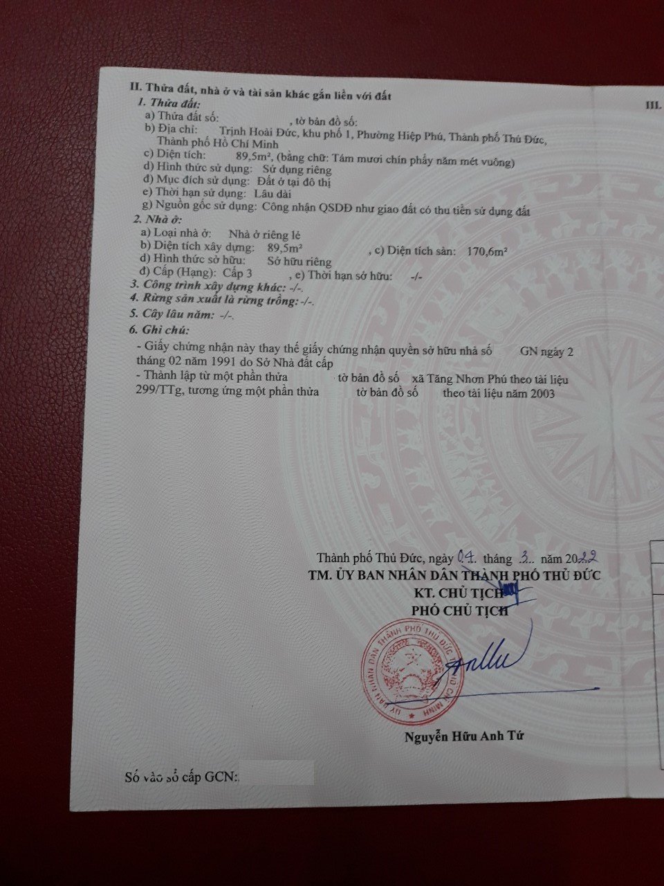 Địa chỉ tài sản: đường Trịnh Hoài Đức, phường Hiệp Phú, , Phường Hiệp Phú, Quận 9, Hồ Chí Minh