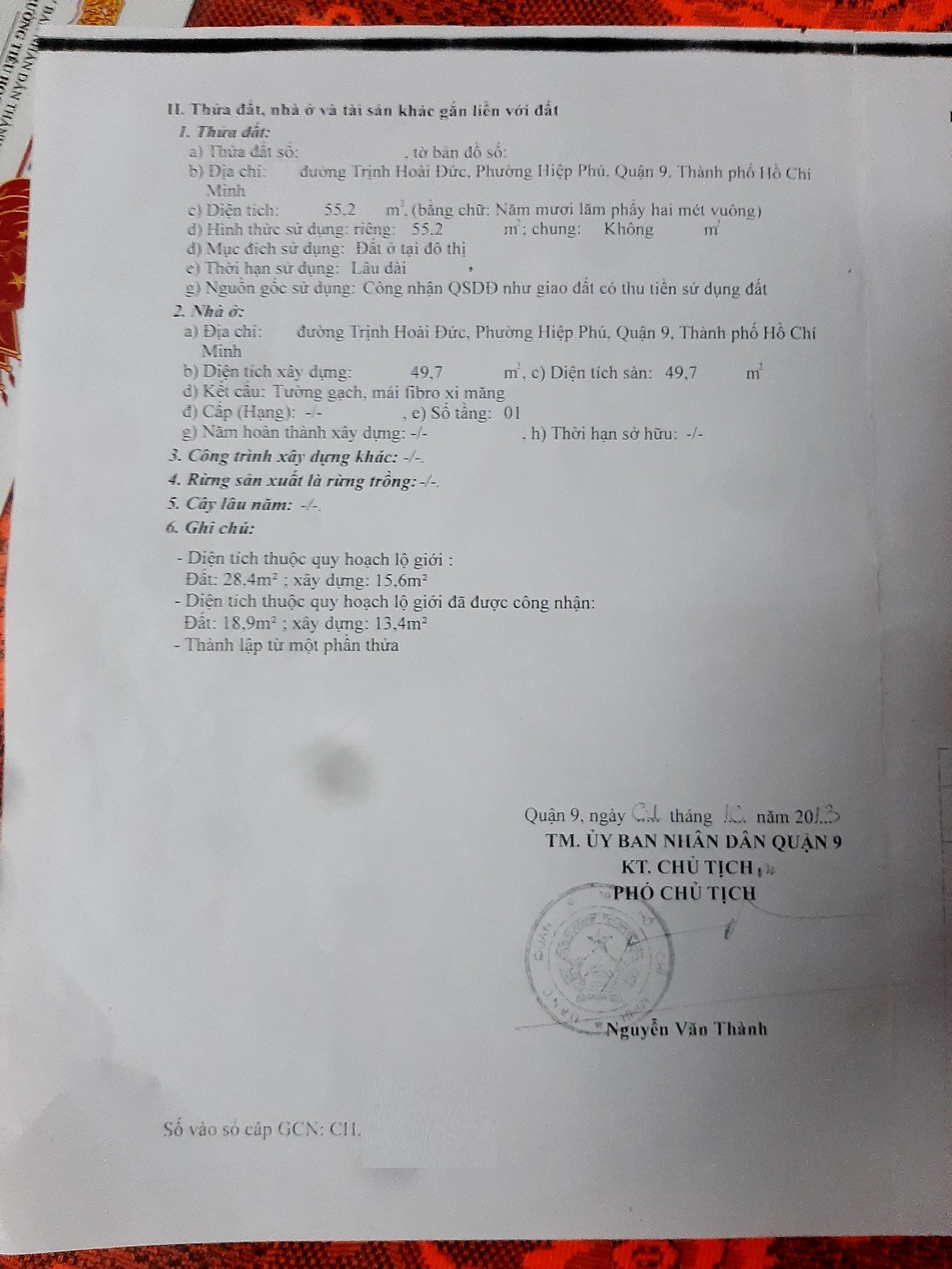 Địa chỉ tài sản: góc 2 mặt tiền Trịnh Hoài Đức, phường Hiệp Phú, TP Thủ Đức., Phường Hiệp Phú, Quận 9, Hồ Chí Minh