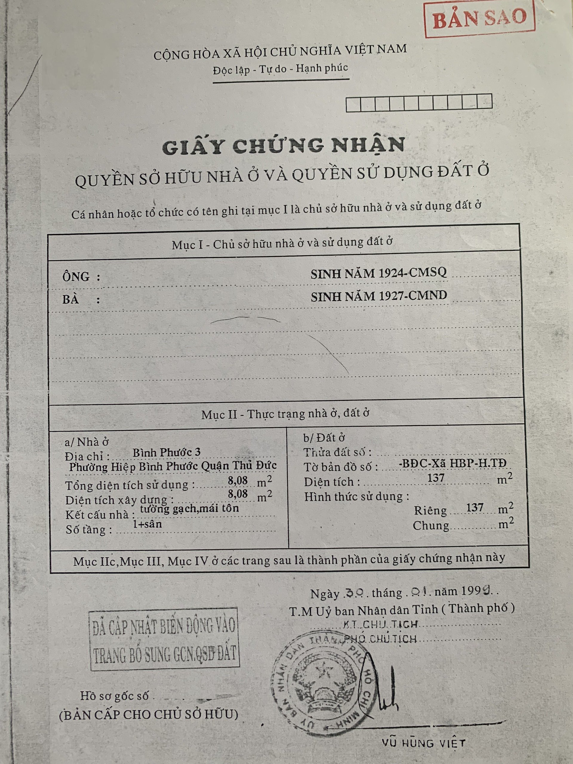 Địa chỉ tài sản: 2 MT đường QL13, Phường HBP, Phường Hiệp Bình Phước, Quận Thủ Đức, Hồ Chí Minh