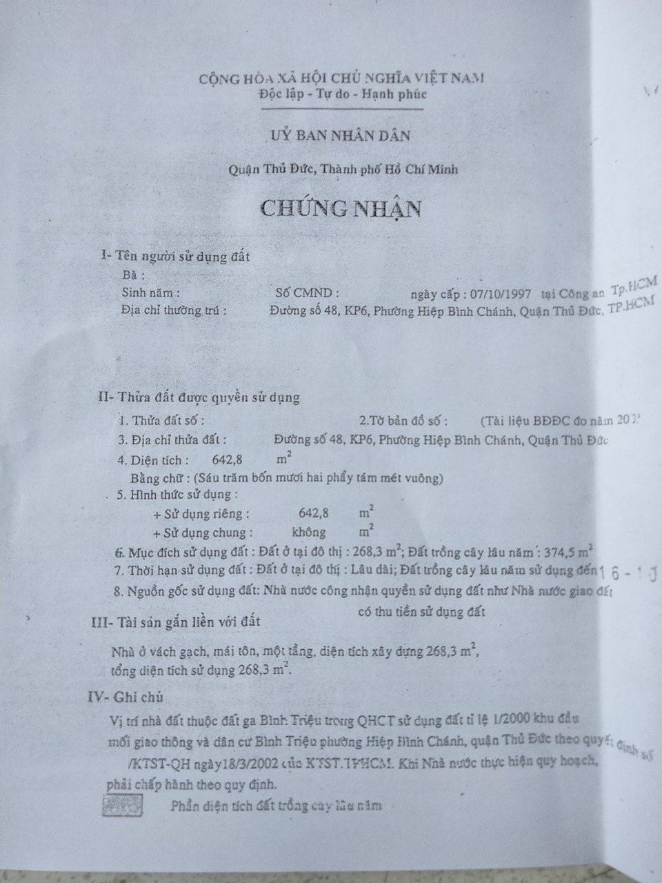 Địa chỉ tài sản: hẻm 29 đường số 48, Phường Hiệp Bình Chánh, Phường Hiệp Bình Chánh, Quận Thủ Đức, Hồ Chí Minh