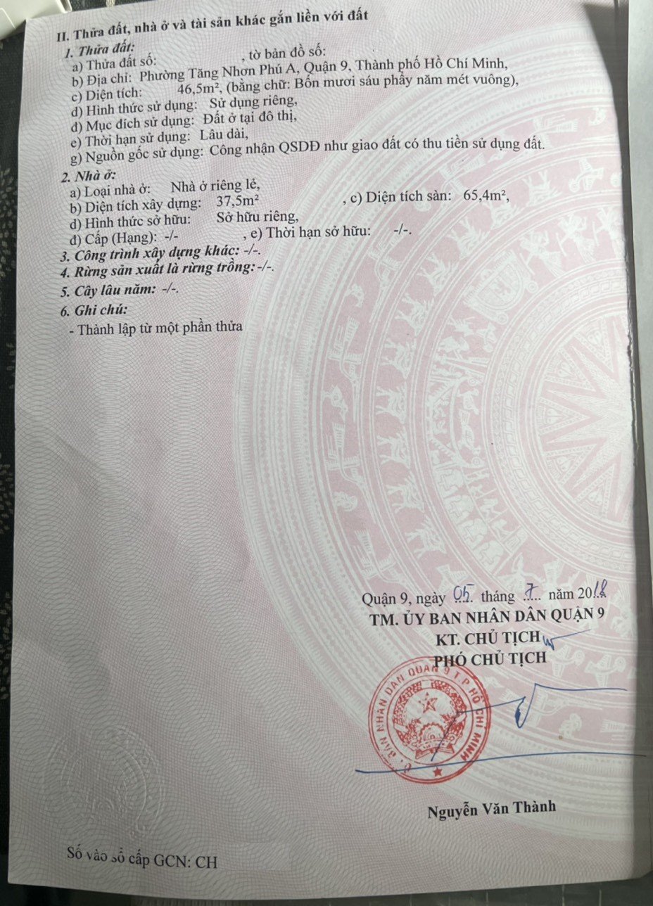Địa chỉ tài sản: đường 102-Tăng Nhơn Phú A, , Phường Tăng Nhơn Phú A, Quận 9, Hồ Chí Minh