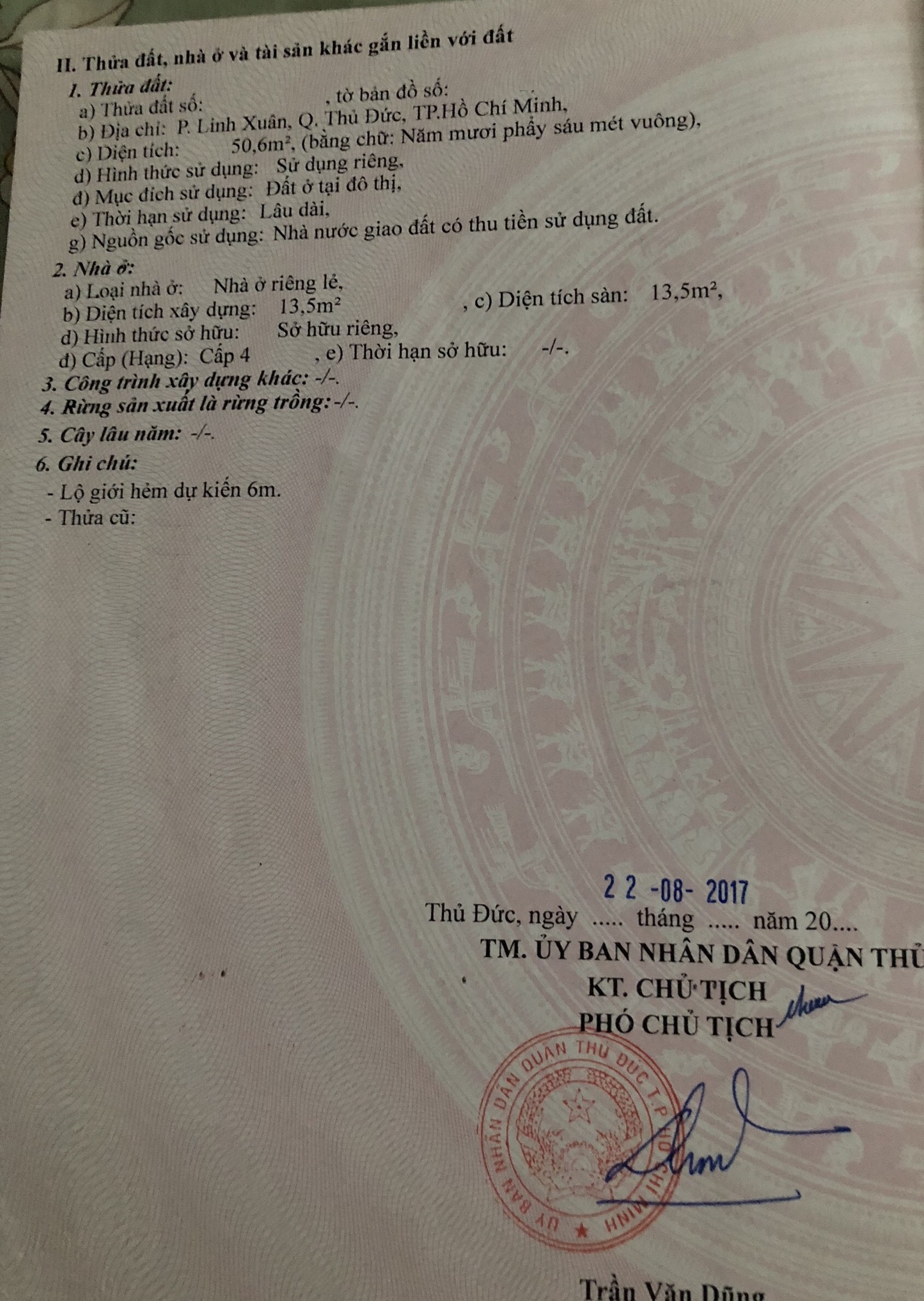 Diện Tích đất công nhận: 50,6 m² ngang 4.51m