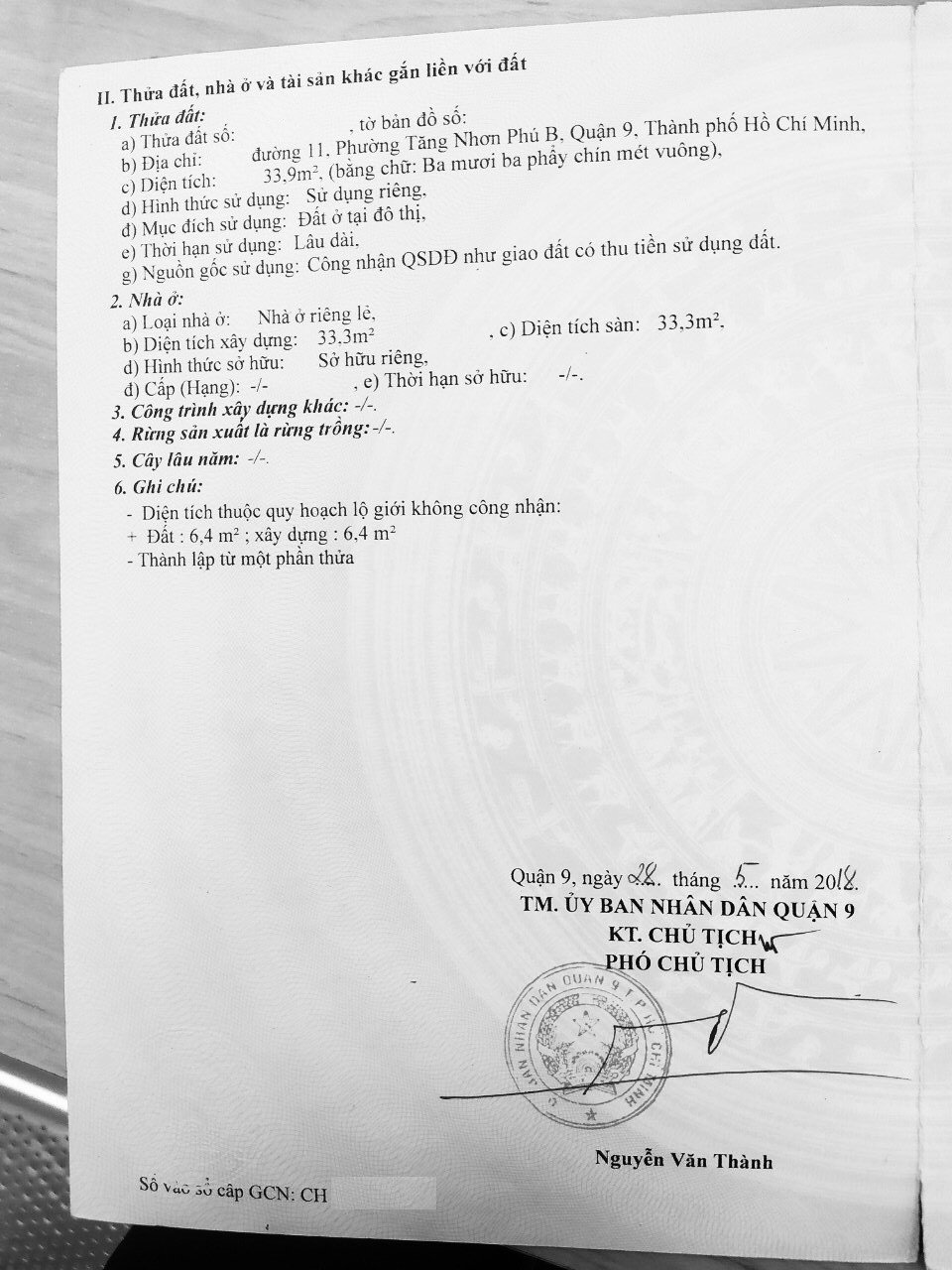 Địa chỉ tài sản: đường 11, phường Tăng Nhơn Phú B, Phường Phước Long B, Quận 9, Hồ Chí Minh