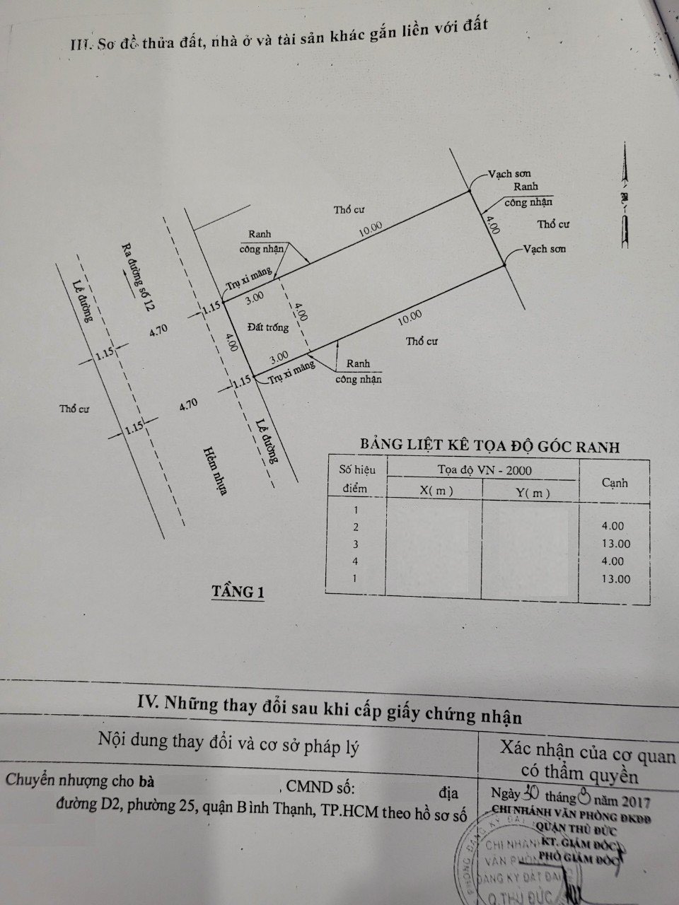 *Diện Tích đất công nhận: 52 m2 ngang 4 m x dài 13 m