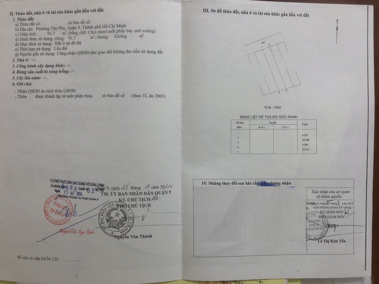 *Diện Tích đất công nhận: 91.7 m2 ngang 4 m x dài 23 m