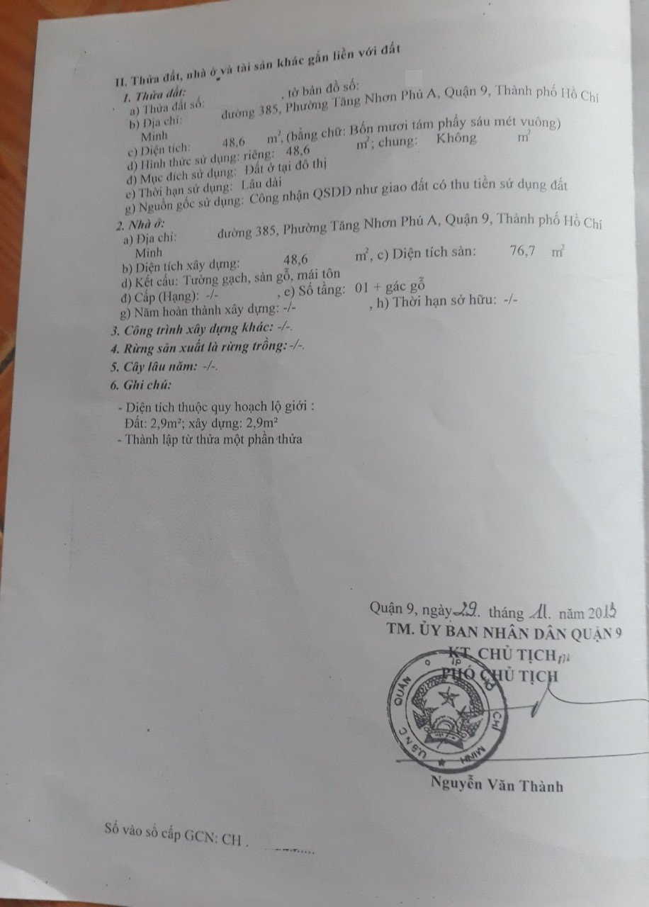 Địa chỉ tài sản: đường 385, phường Tăng Nhơn Phú A, Phường Tăng Nhơn Phú A, Quận 9, Hồ Chí Minh
