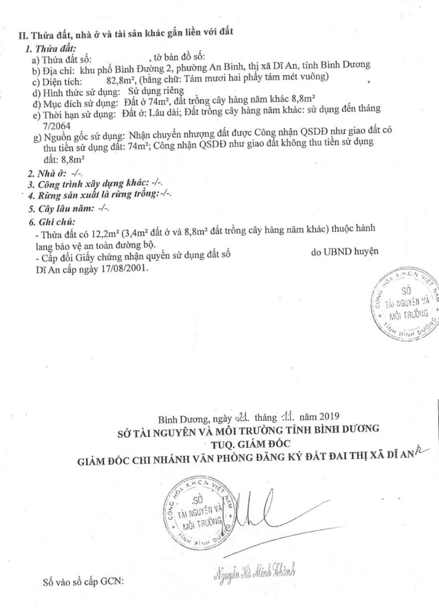 Địa chỉ tài sản: Đường 2, phường An BÌnh, Phường Bình An, Thị xã Dĩ An, Bình Dương