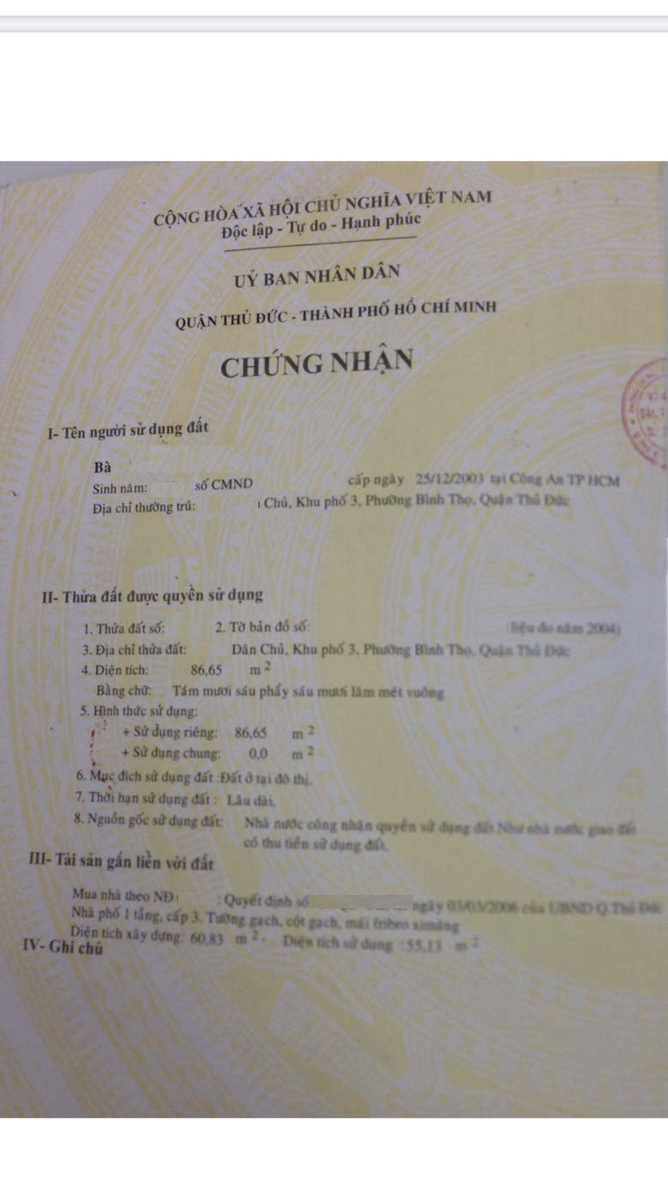 Địa chỉ tài sản: Đường Dân Chủ, Phường Bình Thọ, Phường Bình Thọ, Quận Thủ Đức, Hồ Chí Minh