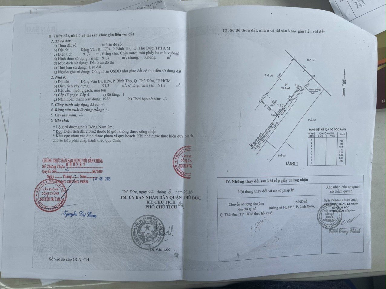 *Diện Tích đất công nhận: 91.3 m2 ngang 7.23m hậu 5.83 m x dài 14.5 m