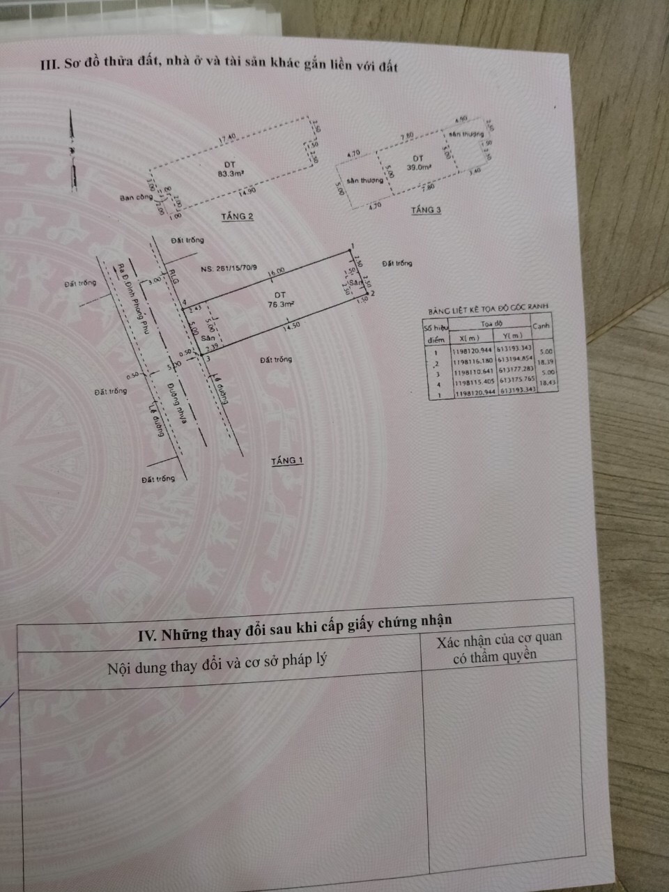 | Loại BDS | Pháp lý | Sổ Hồng | Sân thượng | ||
