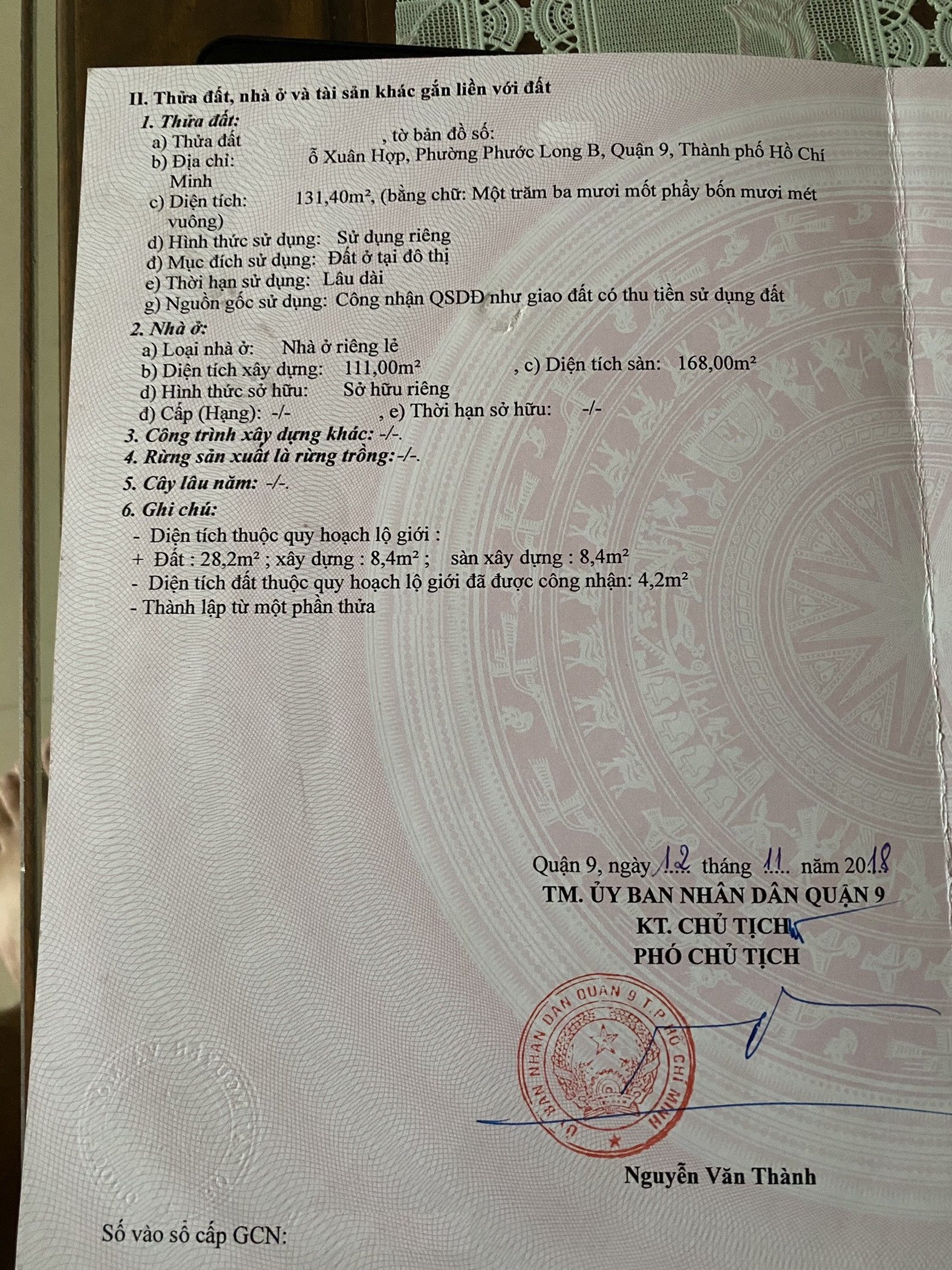 Địa chỉ tài sản: Đường Đỗ Xuân Hợp, P. Phước Long B, Phường Phước Long B, Quận 9, Hồ Chí Minh