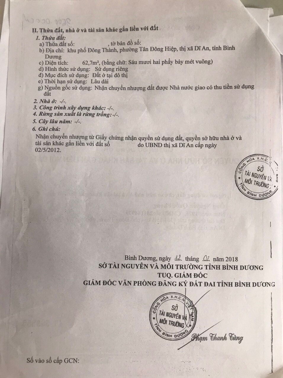 *Diện Tích đất công nhận: 62.7m2 (ngang 4.5m x dài 14m)