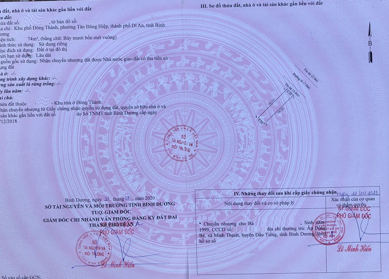 Địa chỉ tài sản: Đường Lê Văn Mầm,Khu phố Đông Thành, Phường Tân Đông Hiệp, Phường Tân Đông Hiệp, Thị xã Dĩ An, Bình Dương