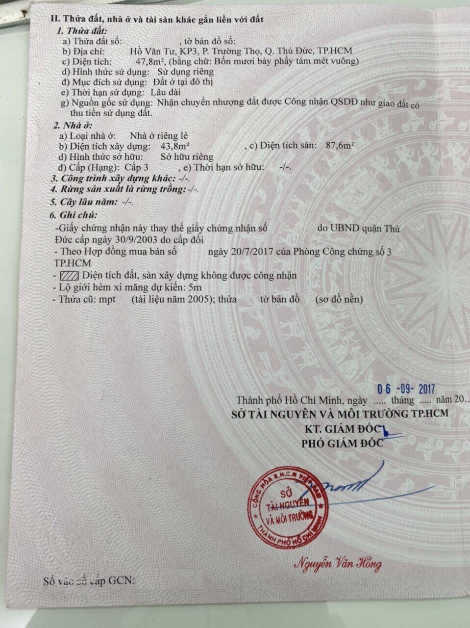 Địa chỉ tài sản: hẻm đường Hồ Văn Tư, phường Trường Thọ, Phường Trường Thọ, Quận Thủ Đức, Hồ Chí Minh