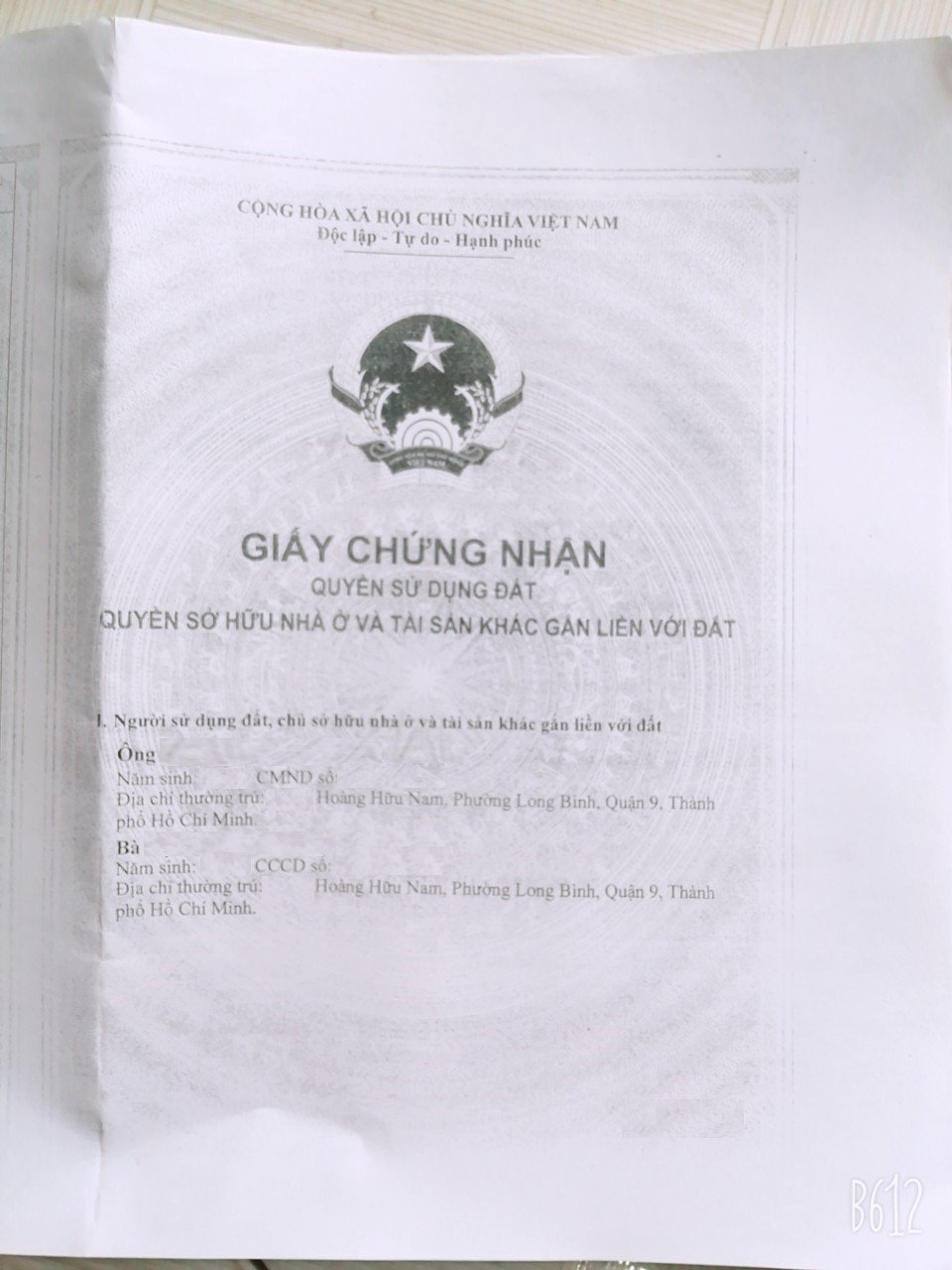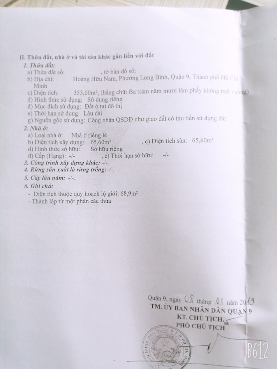 Địa chỉ tài sản: đường Hoàng Hữu Nam, Phường Long Bình, Phường Long Bình, Quận 9, Hồ Chí Minh