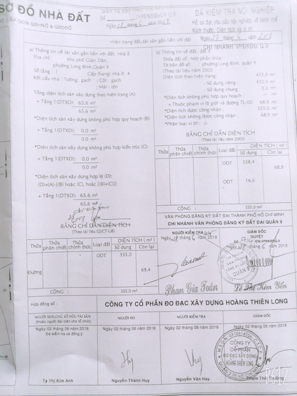 Diện Tích đất công nhận: 355 m² ngang 15.75 m