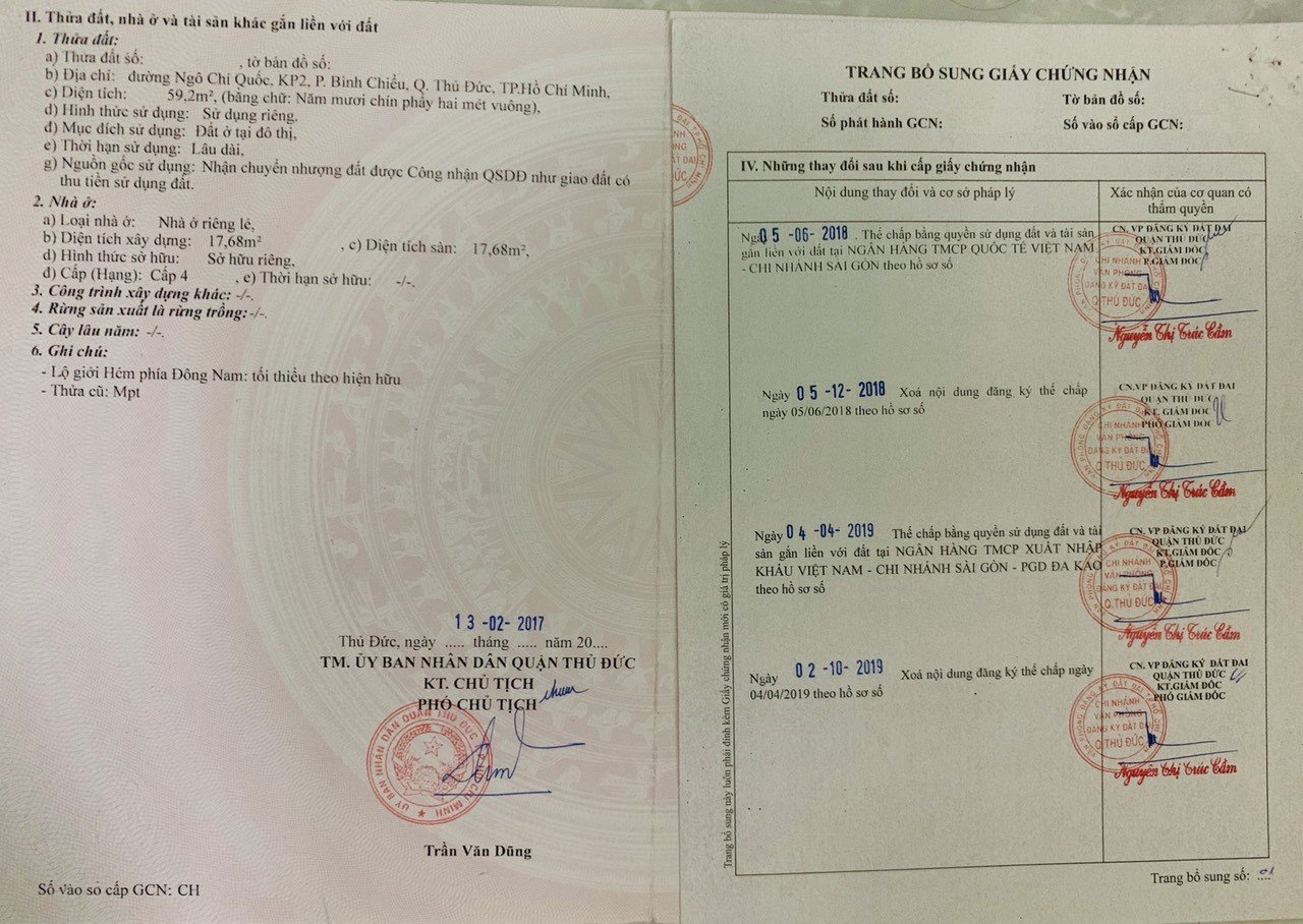 Địa chỉ tài sản: đường Ngô Chí Quốc, Phường Bình Chiểu, Phường Bình Chiểu, Quận Thủ Đức, Hồ Chí Minh