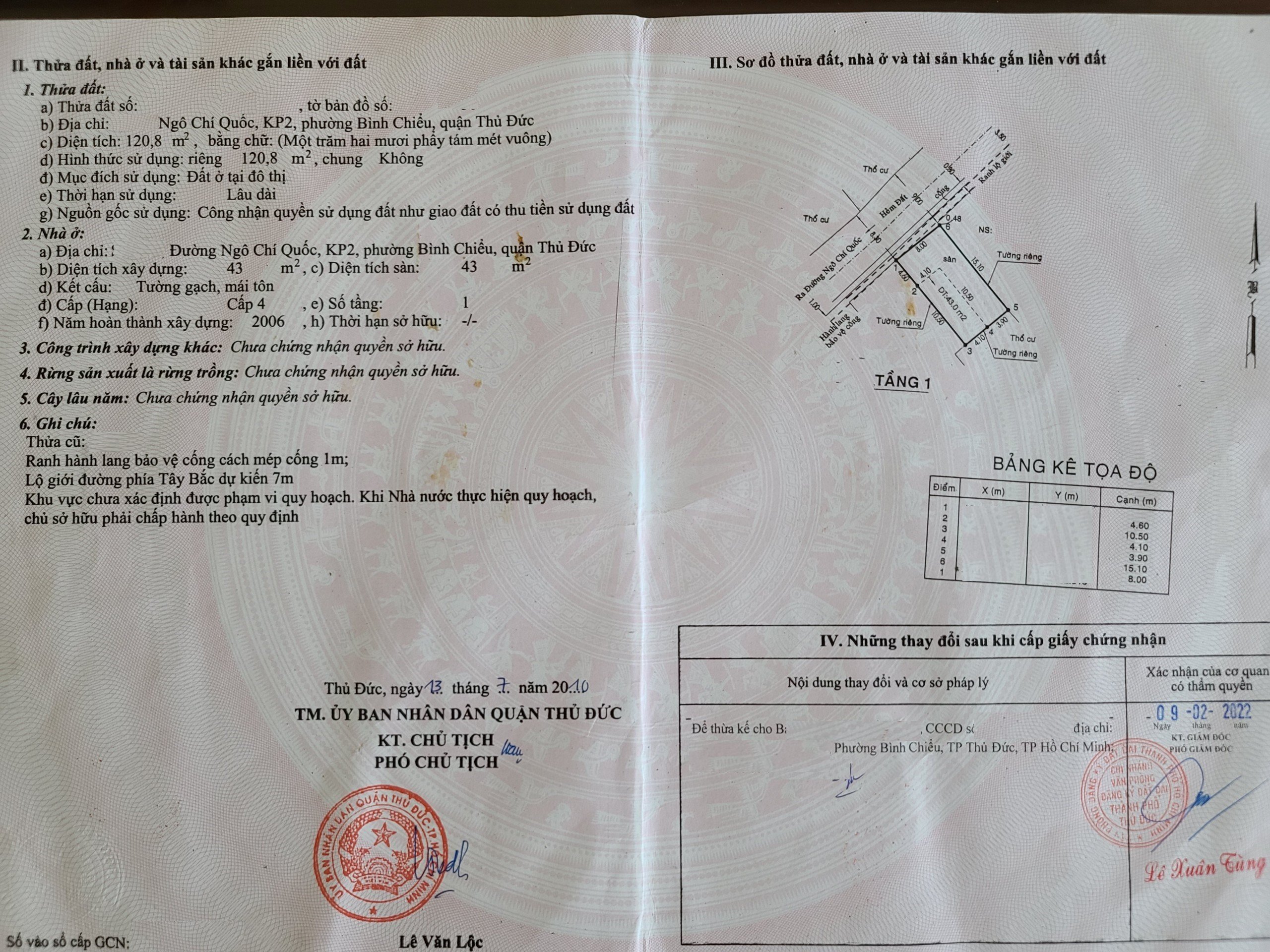 Địa chỉ tài sản: Đường Ngô Chí Quốc, Phường Bình Chiểu, Phường Bình Chiểu, Quận Thủ Đức, Hồ Chí Minh