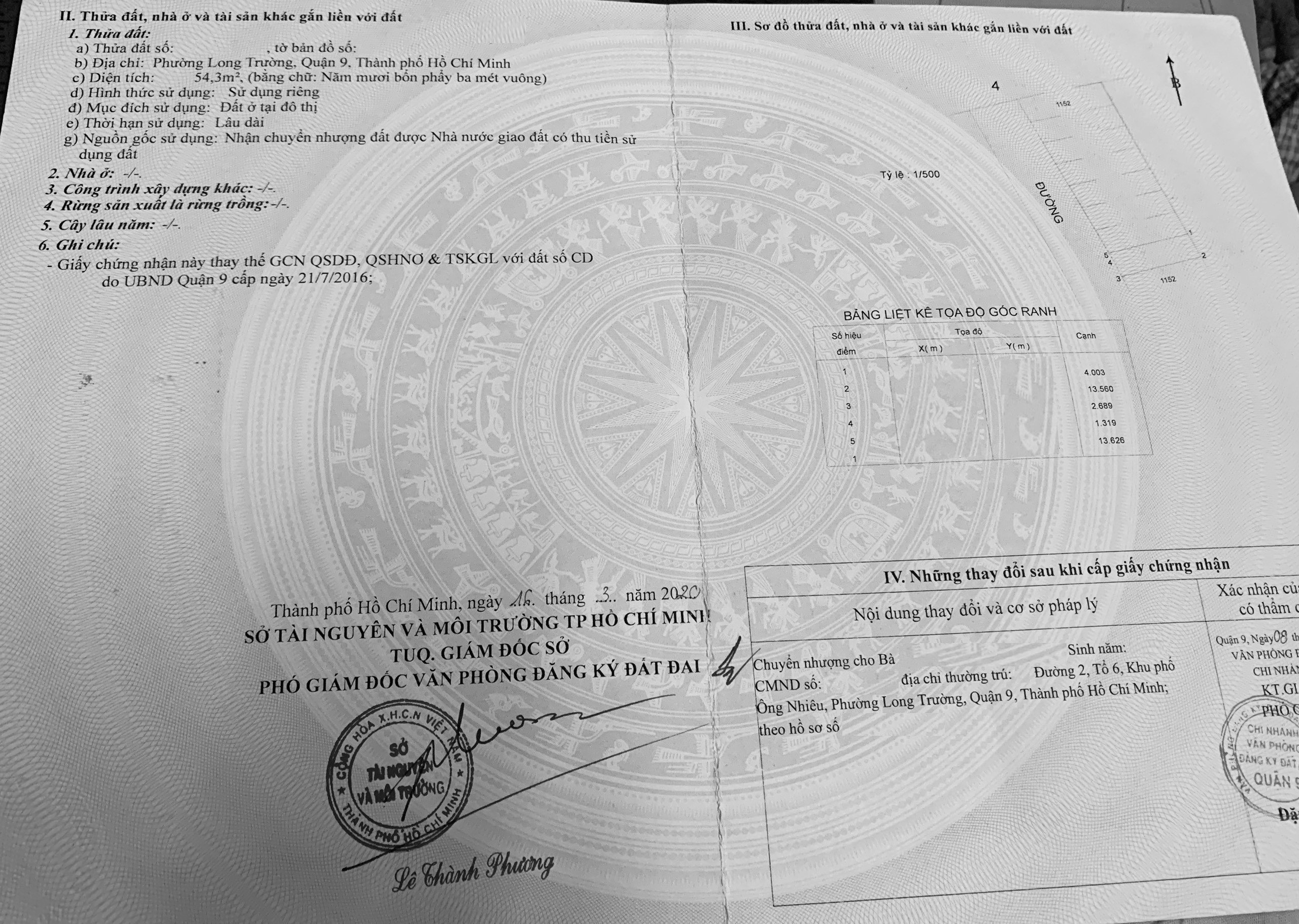 *Diện Tích đất công nhận: 54.3 m2 ngang 4 m x dài 13.5 m