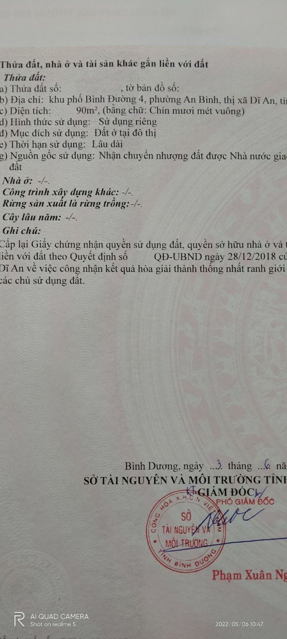 Địa chỉ tài sản: Đường Nguyễn Thượng Hiền, phường An Bình, Dĩ An, Phường An Bình, Thị xã Dĩ An, Bình Dương