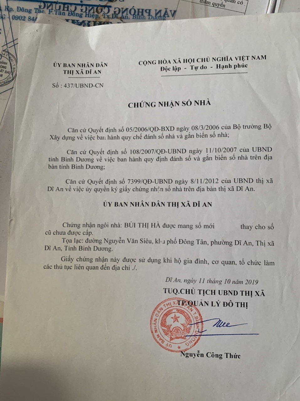Địa chỉ tài sản: đường Nguyễn Văn Siêu, Phường Dĩ An. , Phường Dĩ An, Thị xã Dĩ An, Bình Dương