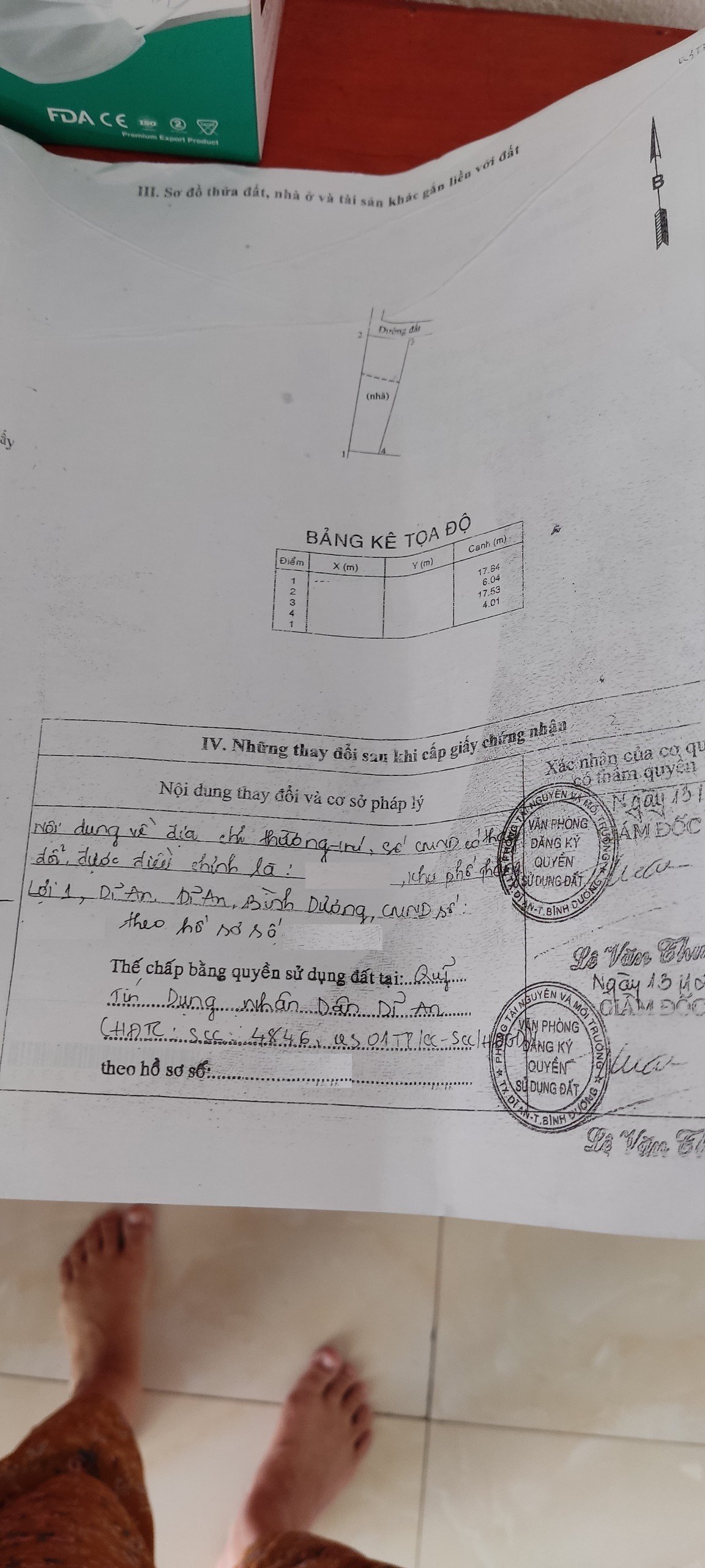 Địa chỉ tài sản: Đường Nguyễn Văn Trỗi, Phường Dĩ An, Phường Dĩ An, Thị xã Dĩ An, Bình Dương