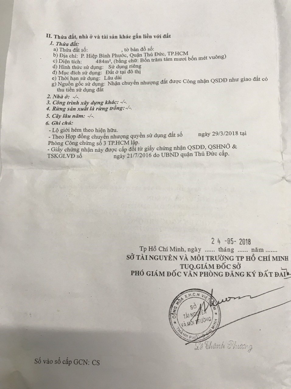 Địa chỉ tài sản: đường QL13, Phường HBP, Phường Hiệp Bình Phước, Quận Thủ Đức, Hồ Chí Minh