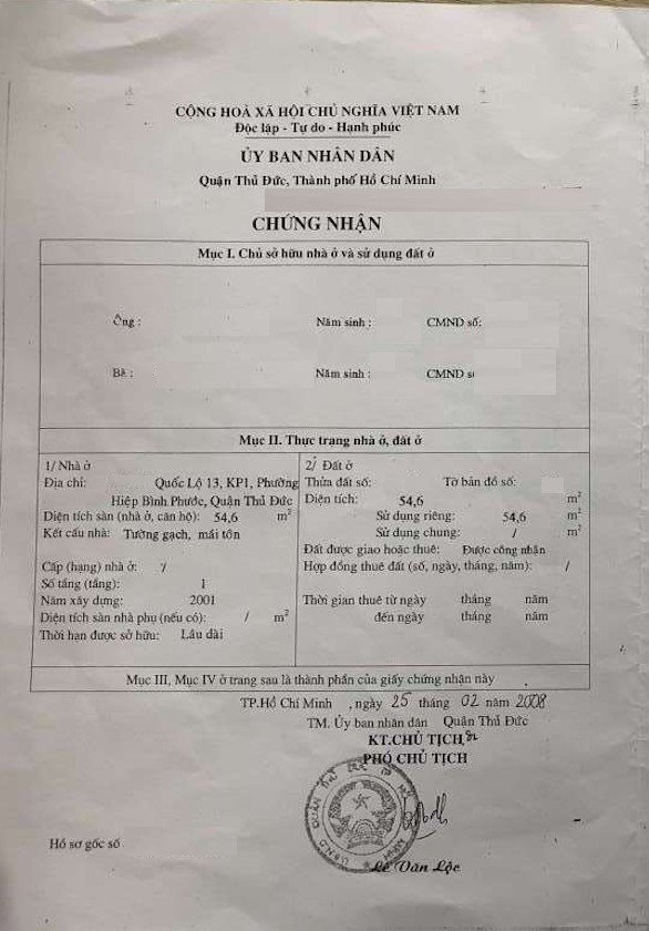 Địa chỉ tài sản: Đường Quốc lộ 13, Phường Hiệp Bình Phước, Phường Hiệp Bình Phước, Quận Thủ Đức, Hồ Chí Minh