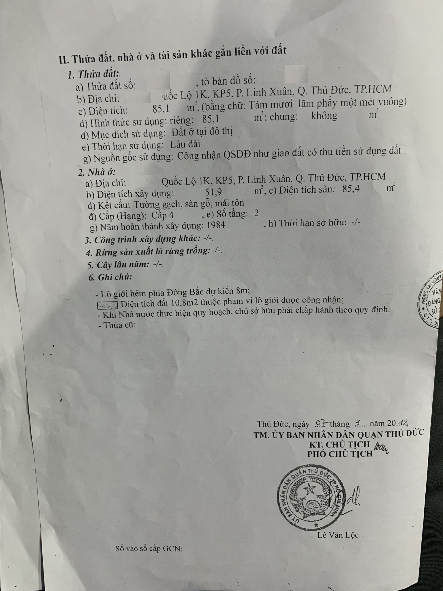 Địa chỉ tài sản: hẻm, Đường Quốc lộ 1K, Phường Linh Xuân, Phường Linh Xuân, Quận Thủ Đức, Hồ Chí Minh