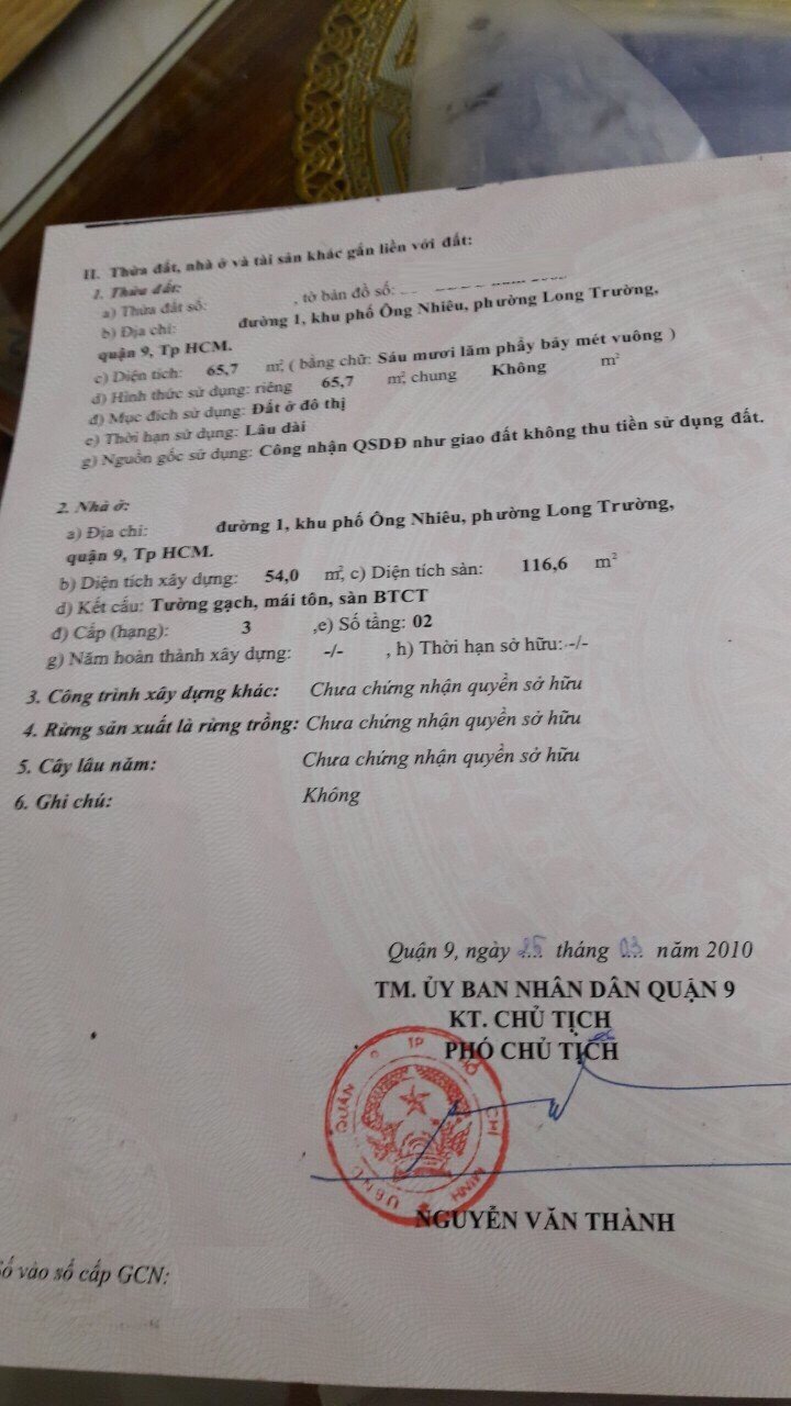 Địa chỉ tài sản: Đường số 1, Phường Long Trường, Phường Long Trường, Quận 9, Hồ Chí Minh
