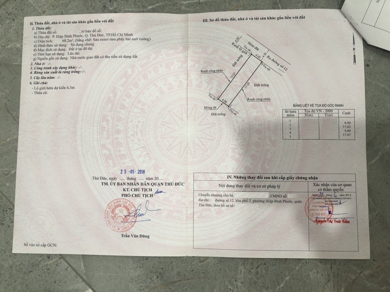 Địa chỉ tài sản: hẻm đường số 12, Phường Hiệp Bình Phước, Phường Bình Chiểu, Quận Thủ Đức, Hồ Chí Minh