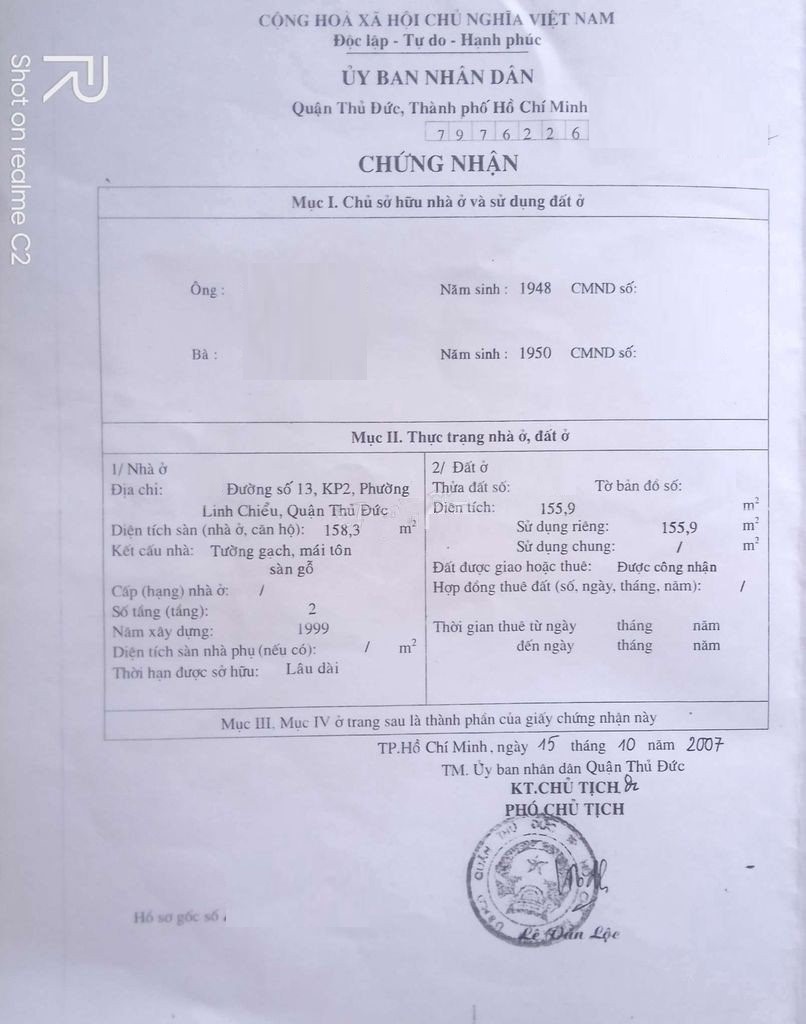*Diện Tích đất công nhận: 155.9 m2