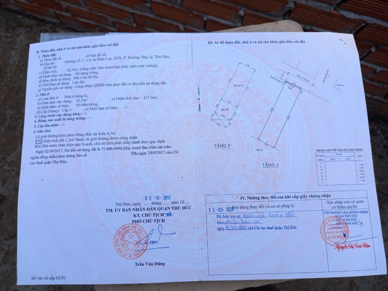 Địa chỉ tài sản: đường số 2, phường Trường Thọ. , Phường Trường Thọ, Quận Thủ Đức, Hồ Chí Minh