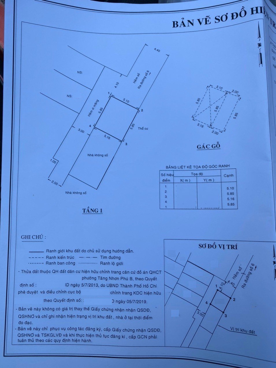 * Diện tích đất ODT: 30m2 (ngang 5.85m x dài 5.1m)