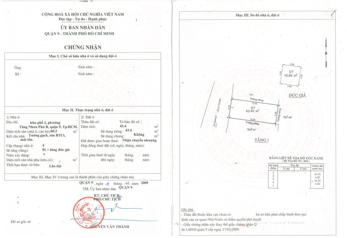 Địa chỉ tài sản: Đường số 6, Phường Tăng Nhơn Phú B, Phường Tăng Nhơn Phú B, Quận 9, Hồ Chí Minh
