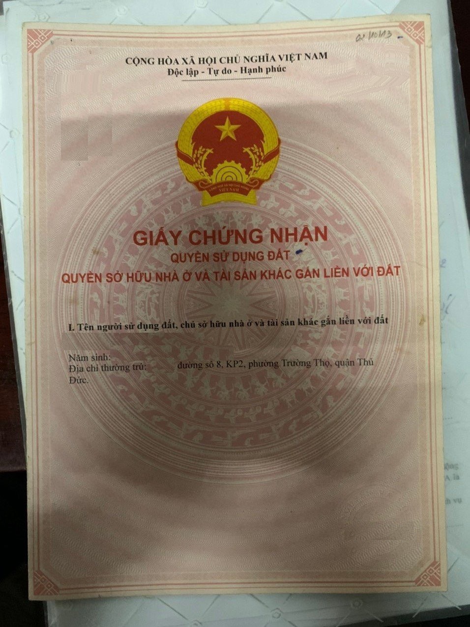 Địa chỉ tài sản: Đường số 8, P Trường Thọ, Phường Trường Thọ, Quận Thủ Đức, Hồ Chí Minh